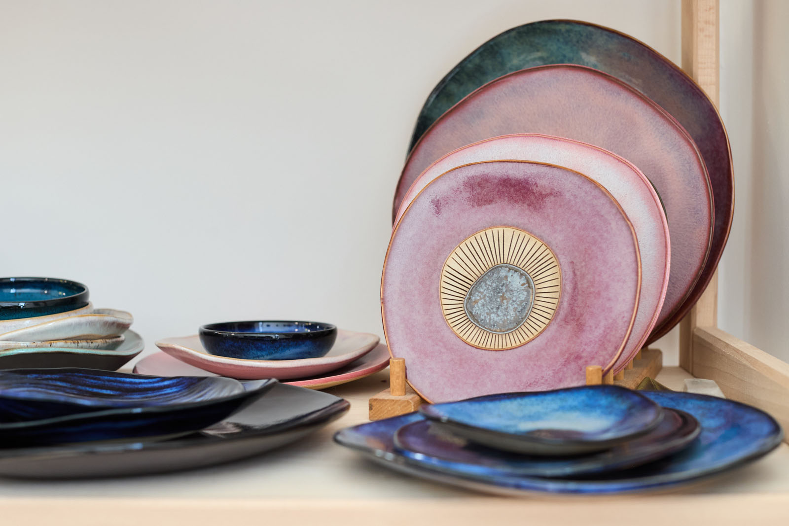 Bardzo lubię eksperymentować z różnymi połączeniami – nadmorskie krajobrazy, kosmiczne mieszanki przypominające mgławice, stare złoto. Często inspiruję się kolorami kamieni i zestawiam je z ceramiką, żeby odkryć ciekawe odcienie. To ciągłe poszukiwanie i zabawa z zestawieniami sprawia mi największą frajdę.