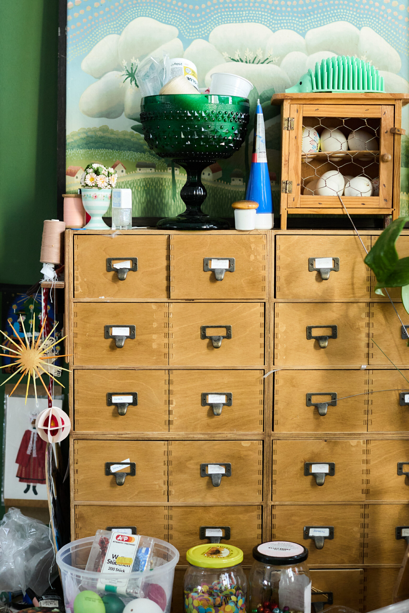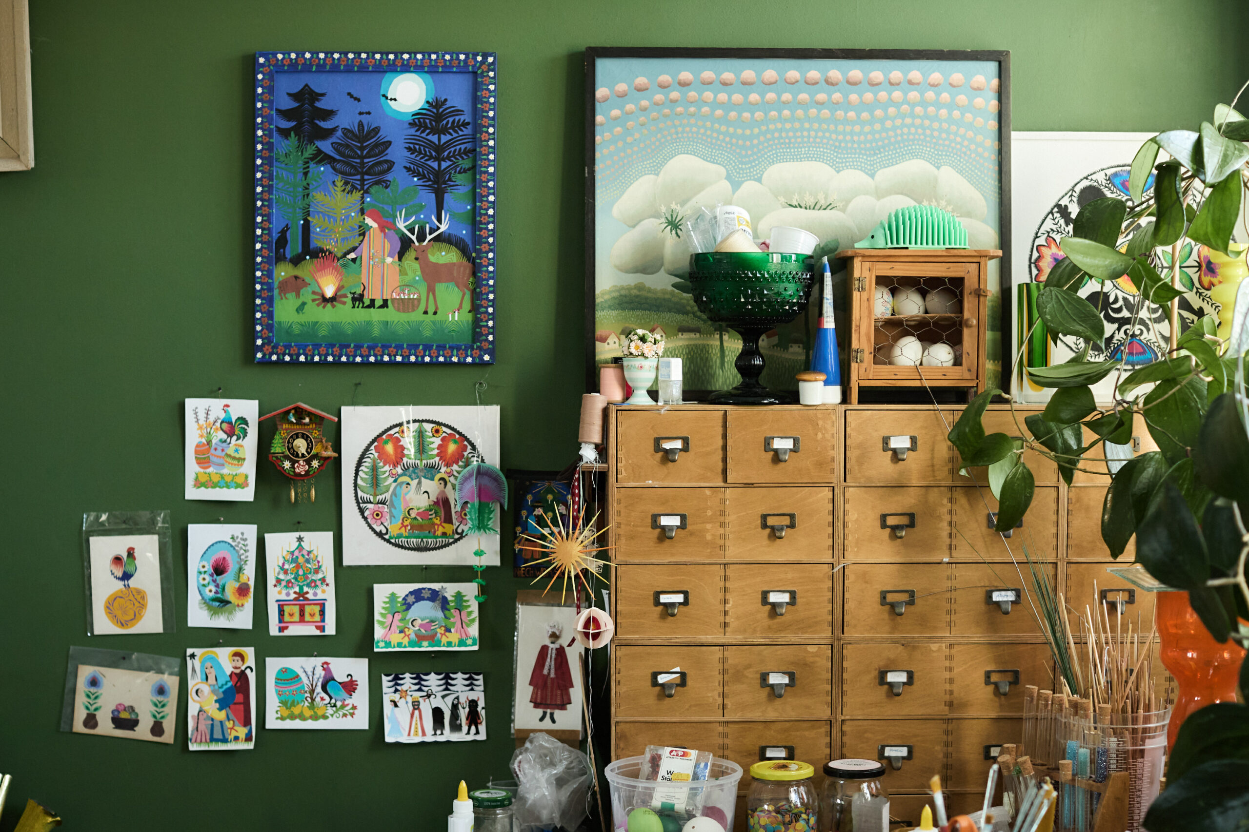 W swojej twórczości Jagoda wykorzystuje różnorodne materiały – kolorowy i metaliczny papier, bibułę, szklane koraliki, nici, słomę i druciki – przekształcając je w ozdoby choinkowe, pająki tarczowe i kuliste, gwiazdy kolędnicze oraz dekoracyjne pisanki oklejane tradycyjnymi wycinankami. Często okleja także wydmuszki kurze i gęsie, a także wykonuje kartki okolicznościowe inspirowane motywami regionalnymi.